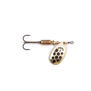 Dostępne w następujących rozmiarach – błystki ze srebrną paletką od #1 do #5, złote i miedziane od #1 do #3 w 6 wariantach barwnych, tj. srebrna, złota i miedziana z czerwonym oraz czarnym kropkowaniem.