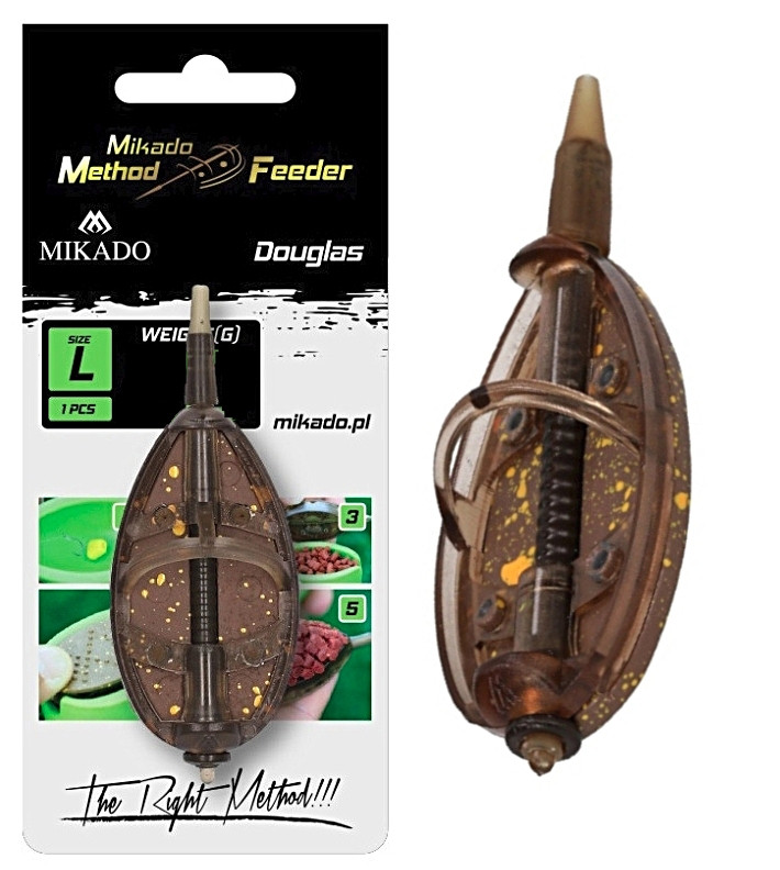 Podajnik method feeder Douglas to ulepszona, żebrowana konstrukcja idealnie utrzymująca zanętę. Aerodynamiczny kształt gwarantuje bardzo dalekie rzuty, a plastikowe zakończenie zabezpiecza zanętę przed wypadnięciem przy uderzeniu w wodę.