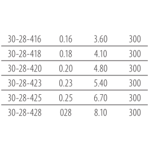 • średnice od 0,16 do 0,28 mm;