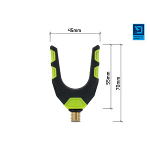Podstawowa podpórka na wędkę w kształcie litery "U" zaprojektowany w kolorach naszej innowacyjnej serii feederowej Delphin Reaxe. Jest bardzo dobrze wykonana, solidna i trwała. Kształt "U" pozwala na użycie wędek o różnych średnicach rękojeści. Powierzchnia jest pokryta gumowym materiałem, który chroni wędki przed uszkodzeniem. Podpórka wykonana jest z wytrzymałych materiałów, dzięki czemu nie ulegnie tak łatwo uszkodzeniu lub zarysowaniu. Posiada uniwersalny gwint kompatybilny ze wszystkimi standardowymi ramionami i uchwytami. Gumowa część na gwincie zapobiega obracaniu się podpórki.