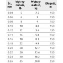 Średnica w mm (# - klasyfikacja japońska): 0,04/#0,3; 0,06/#0,4; 0,08/#0,5; 0,10/#0,6; 0,12/#0,8; 0,14/#1,0; 0,16/#1,2; 0,18/#1,5; 0,20/#1,7; 0,22/#2,0; 0,24/#2,5; 0,26/#3,0; 0,28/#3,5; 0,30/#4,0