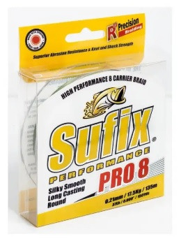 Ośmiosplotowa plecionka Sufix Pro 8 wysokiej klasy charakteryzująca się doskonałymi parametrami użytkowymi.