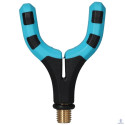 Przednia podpórka feederowa pod jedną wędkę z obustronną blokadą i wycięciem pod żyłkę.