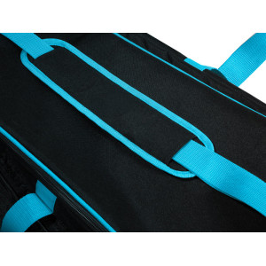 Etui posiada z boku bardzo praktyczną kieszeń wykonaną z wodoodpornego materiału, w której zmieścisz różnego rodzaju sprzęt wędkarski o mniejszych gabarytach lub dokumenty i telefon komórkowy. Transport ułatwiają również uchwyty oraz pasek na ramię z wyściółką.
