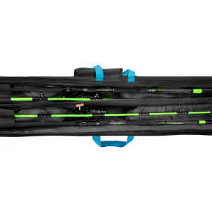 Solidny dwukomorowy pokrowiec od marki Delphin zaprojektowany specjalnie dla miłośników połowu sumów. Całość mocno wyściełana miękkim, ale mocnym wypełnieniem wewnętrznym o grubości 6 mm. Podczas transportu nie musisz się w najmniejszym stopniu martwić o swoje wędki. Posiada również bardzo specyficzną konstrukcję, która umożliwia rozpinanie i rozkładanie górnej części, zapewniając doskonały dostęp do pokrowca. Wkładanie lub wyjmowanie wędek będzie bardzo wygodne i łatwe w każdych okolicznościach. W dolnej części pokrowca znajdziesz praktyczne uchwyty na wędki. Wędki można następnie przymocować za pomocą rzepów po ich włożeniu. Dzięki temu będą w pokrowcu zawsze na swoim miejscu. Projektując ten futerał myśleliśmy również o różnych rozmiarach kołowrotków i długościach uchwytów na wędziska. Komory na kołowrotki zapewniają dużą przestrzeń, dzięki czemu każdy standardowy zestaw sumowy zmieści się w pokrowcu.