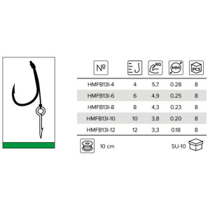 Profesjonalne przypony do techniki Method Feeder, wykończone piekielnie ostrym hakiem MF13, najwyższej klasy żyłką lub plecionką, oraz gumką lub igłą do montażu przynęty.