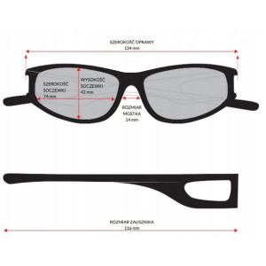 Wszystkie okulary wyposażone są w specjalne soczewki ochronne z filtrem UV A, B i C do 400nm.