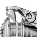 Nowoczesny kołowrotek spinningowy dla prawdziwych estetów. Charakteryzuje się płynną pracą szpuli i równomiernym układaniem plecionki. Kołowrotek wyposażony jest w 6 łożysk kulkowych oraz 1 łożysko wałeczkowe, z których 2 znajdują się w rolce kabłąka. Szpula wykonana jest z aluminium i ma ściętą przednią krawędź. Metalowa rączka jest kręcona w oś przekładni napędowej, co zapewnia solidne połączenie i minimalizuje luz. Kołowrotki Select Chrome dostępne są w 4 rozmiarach (1500, 2000, 2500 i 4000) w zależności od wybranej opcji, oferując głębokie i płytkie szpule.