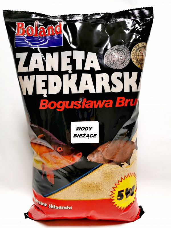 Boland Wody Bieżące 5kg– to zanęta do połowu wszystkich gatunków ryb karpiowatych żyjących w rzekach i kanałach. Boland Wody Bieżące polecana jest szczególnie do połowu leszczy, jazi, kleni, karpi, płoci, brzan, świnek, cert.
